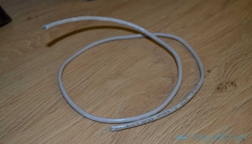 Как было описано в первом разделе этого руководства, то есть в подготовительных мероприятиях, сначала требуется снять изоляцию с конца кабеля (5-6 см).