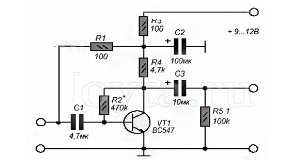 Микрофонный предварительный усилитель на 2-х транзисторах