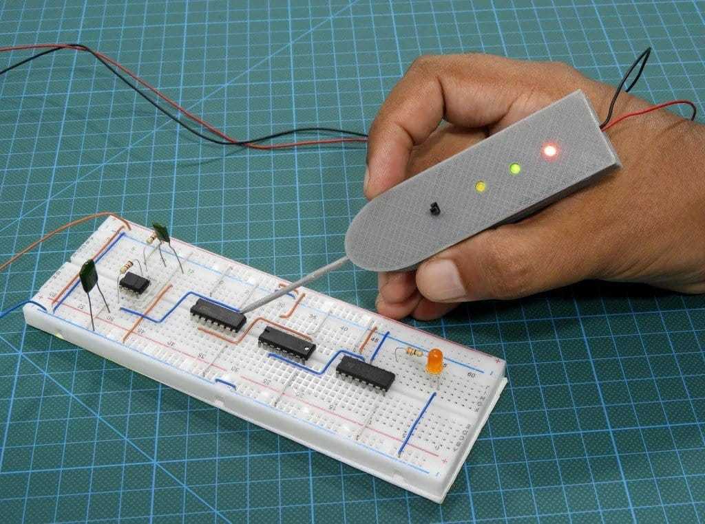 Приборы для индикации микросхем называются логическими пробниками. Такой индикатор трехуровневый (в схему включаются 3 светодиода).