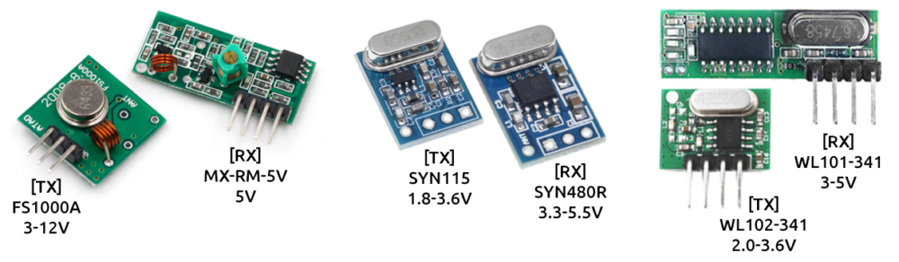Модулей данного типа на китайских площадках существует несколько, продаются они парой (передатчик TX и приёмник RX), либо по отдельности.