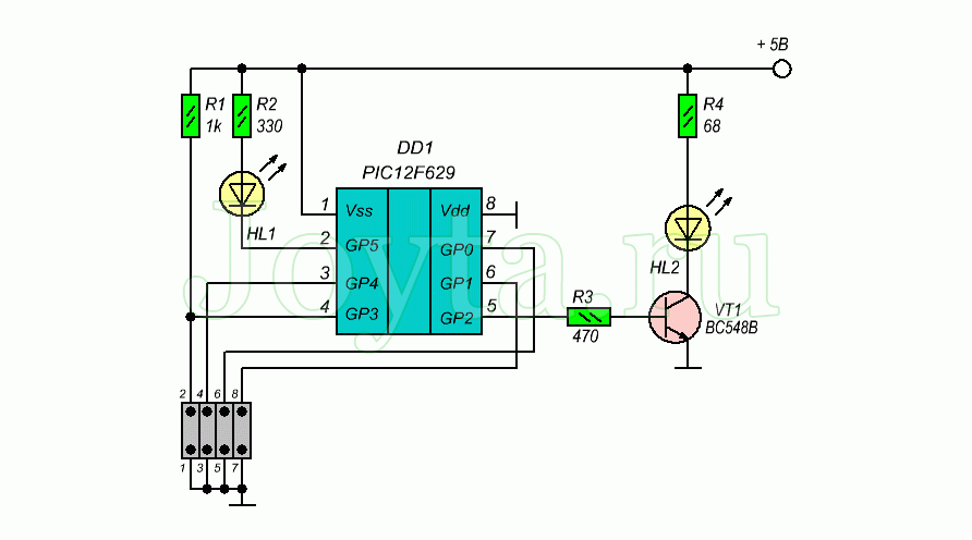 В этой статье будет описана простая тестовая программа для микроконтроллера PIC12F675. Первым шагом в изучении языка программирования, будь то C, Visual Basic или любой другой, является написание программы, которая выводит на экран текст “Hello World”. Когда вы начнете изучать программирование микроконтроллера PIC, вы увидите не “Hello World”, а постоянно мигающий светодиод. “.