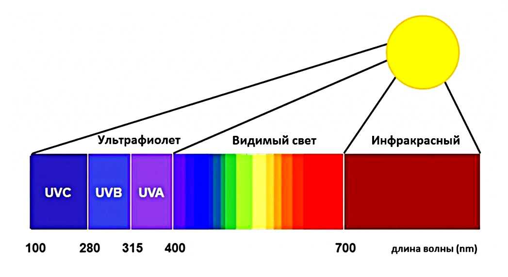 | Ультрафиолет C | UVC | 100 – 280 нм |