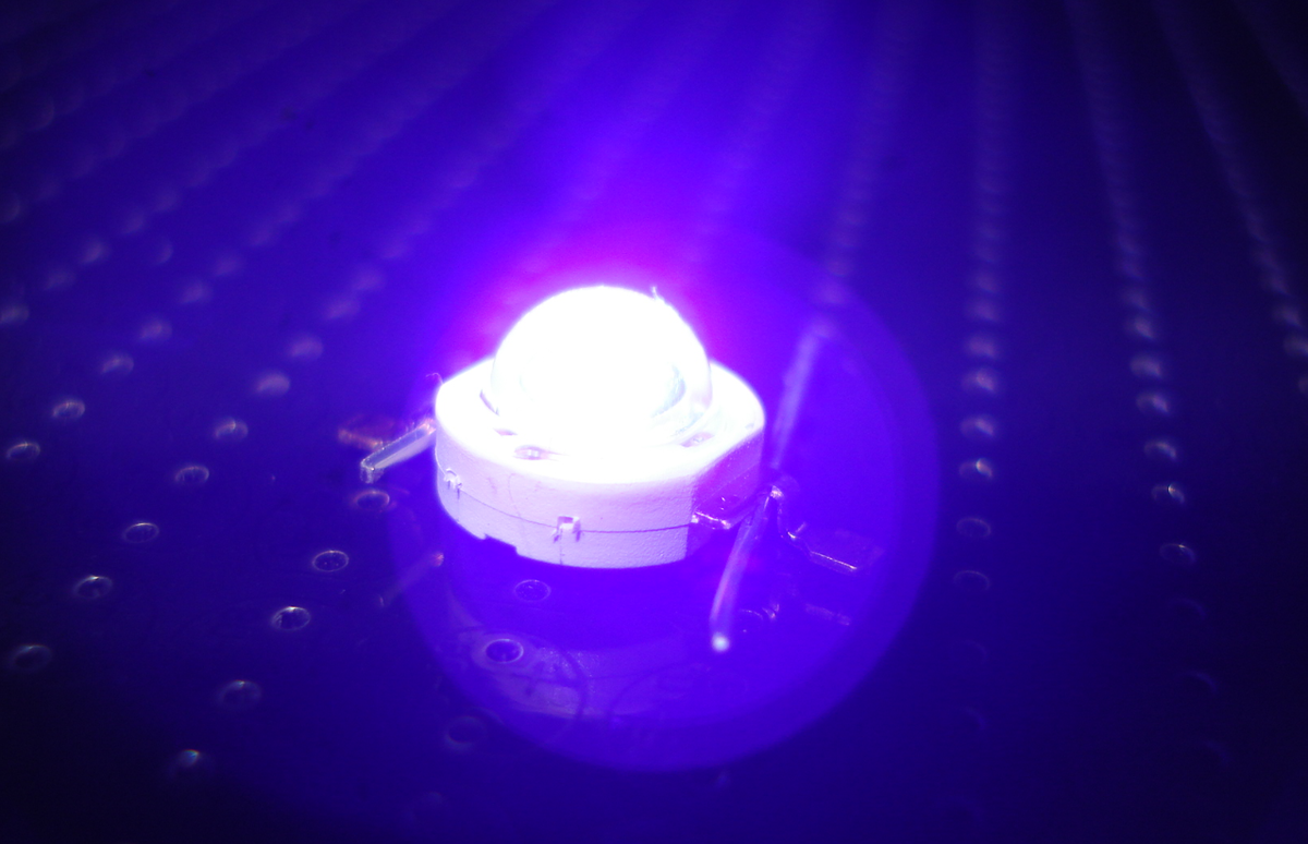 Ультрафиолетовый светодиод в рабочем состоянии.