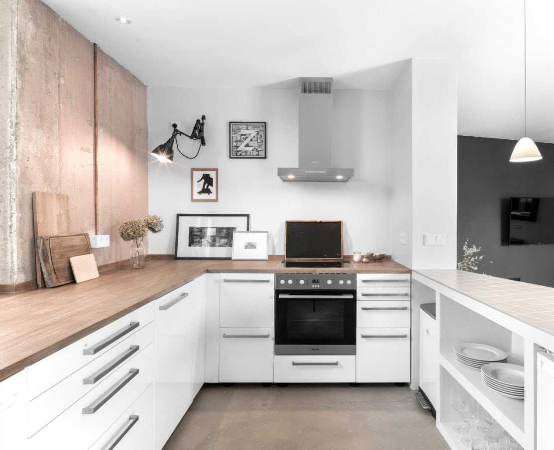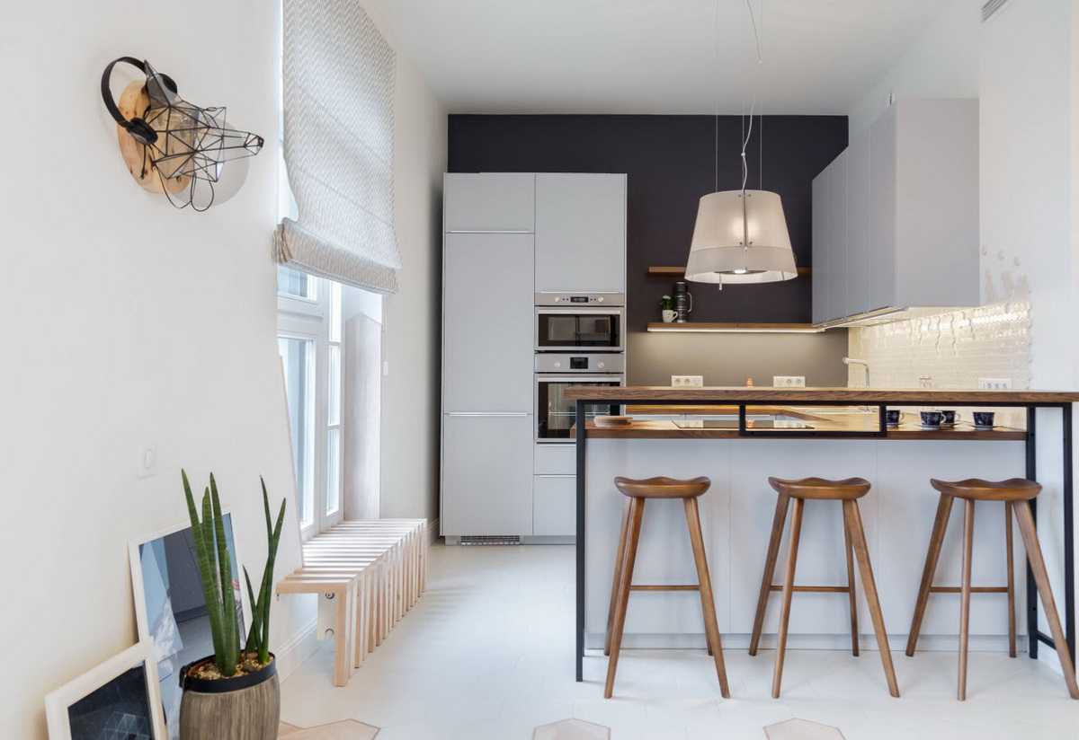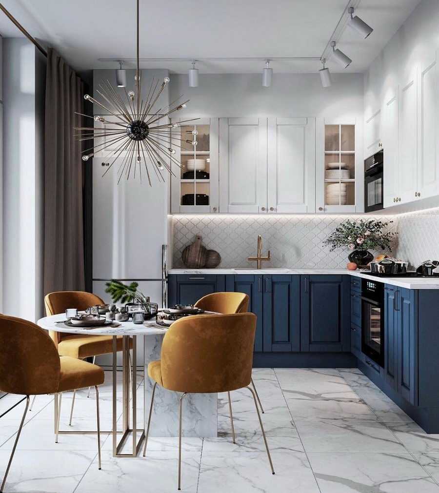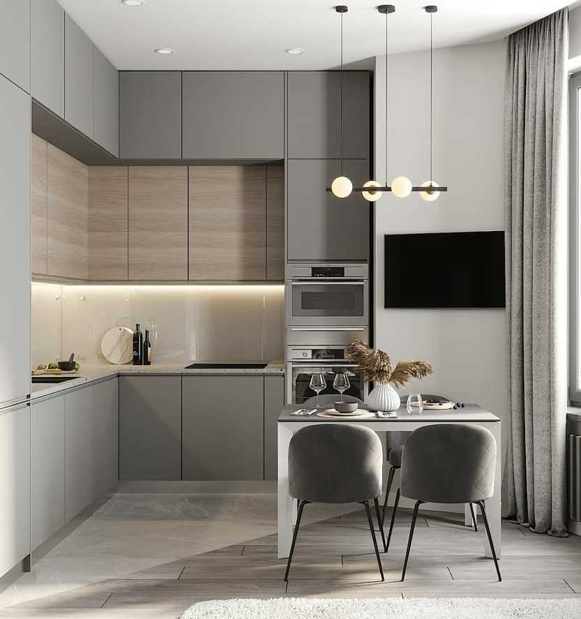 Если кухня узкая, маленькая, то в ней важно детально продумать освещение. Свет, падающий с потолка на длинную стену, визуально сделает потолки выше, а на короткую стену – длиннее комнату