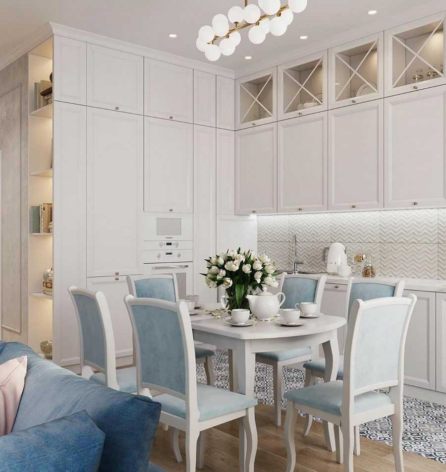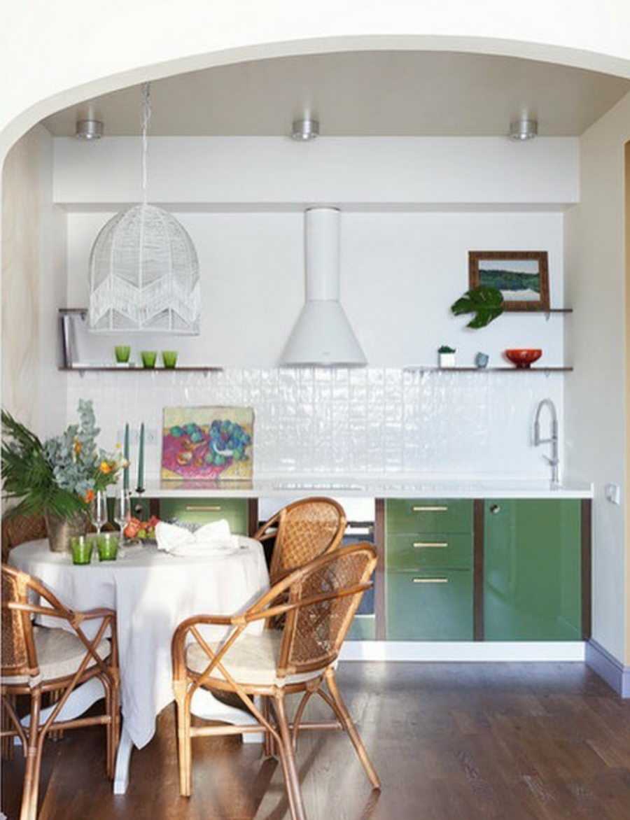 На первый взгляд кажется, что в кухне скромного размера достаточно одной люстры с лампой накаливания, чтобы осветить всю площадь. На деле, чем светлее помещение, тем просторней оно кажется. К тому же без подсветки рабочей зоны трудно обойтись: если во время вечерней готовки кроме люстры столешницу ничего не освещает, то на ней появляется тень от человека или неудачно расположенного холодильника.