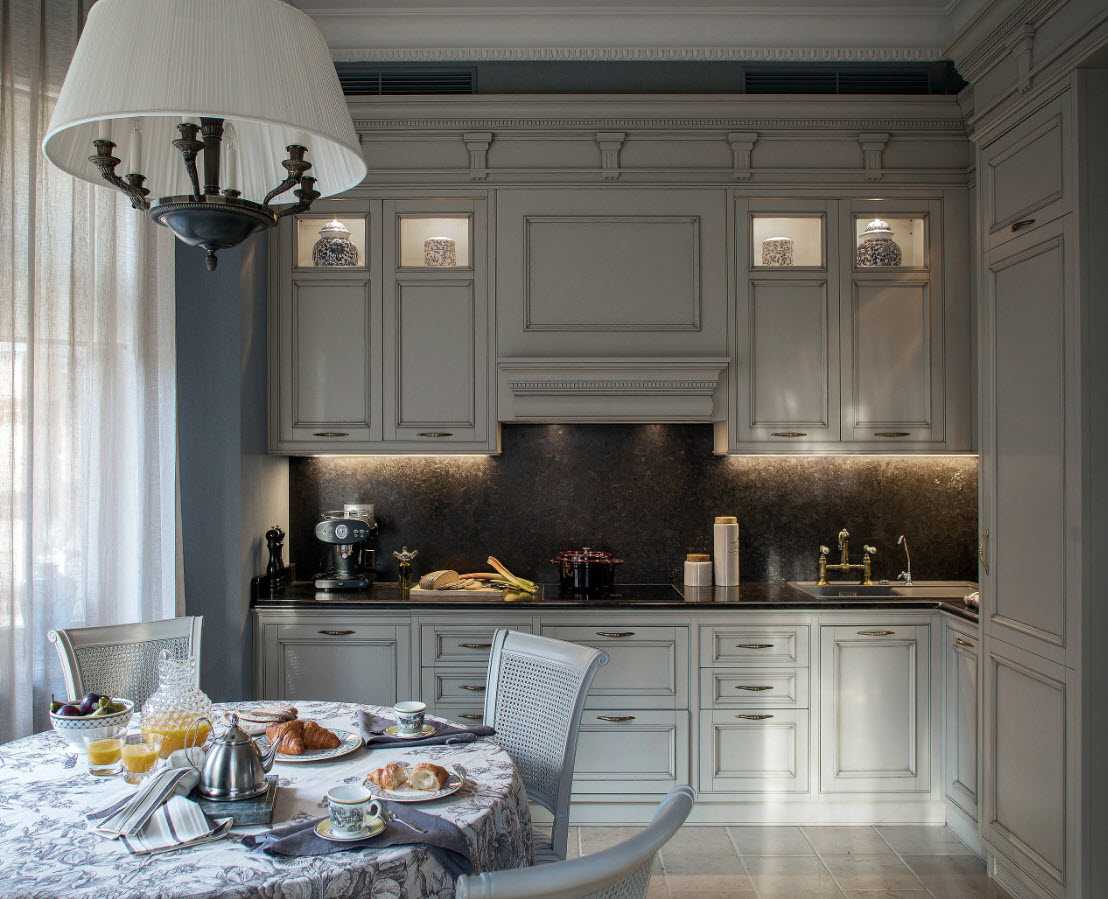 - Светодиодное освещение рабочей поверхности, под навесными верхними шкафчиками. Выбирайте нейтральный спектр излучения.