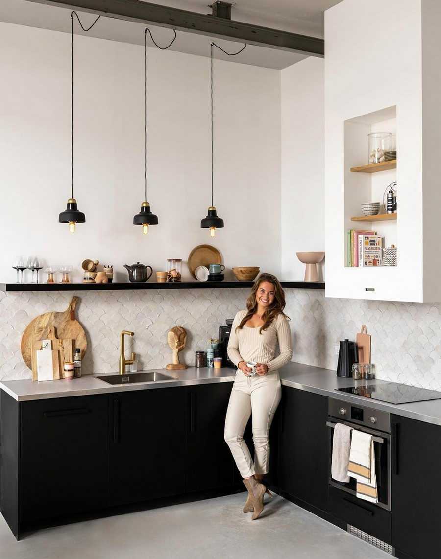 - Если кухня без верхних шкафов, то можете использовать точечное, настенное или подвесное освещение для рабочей зоны.