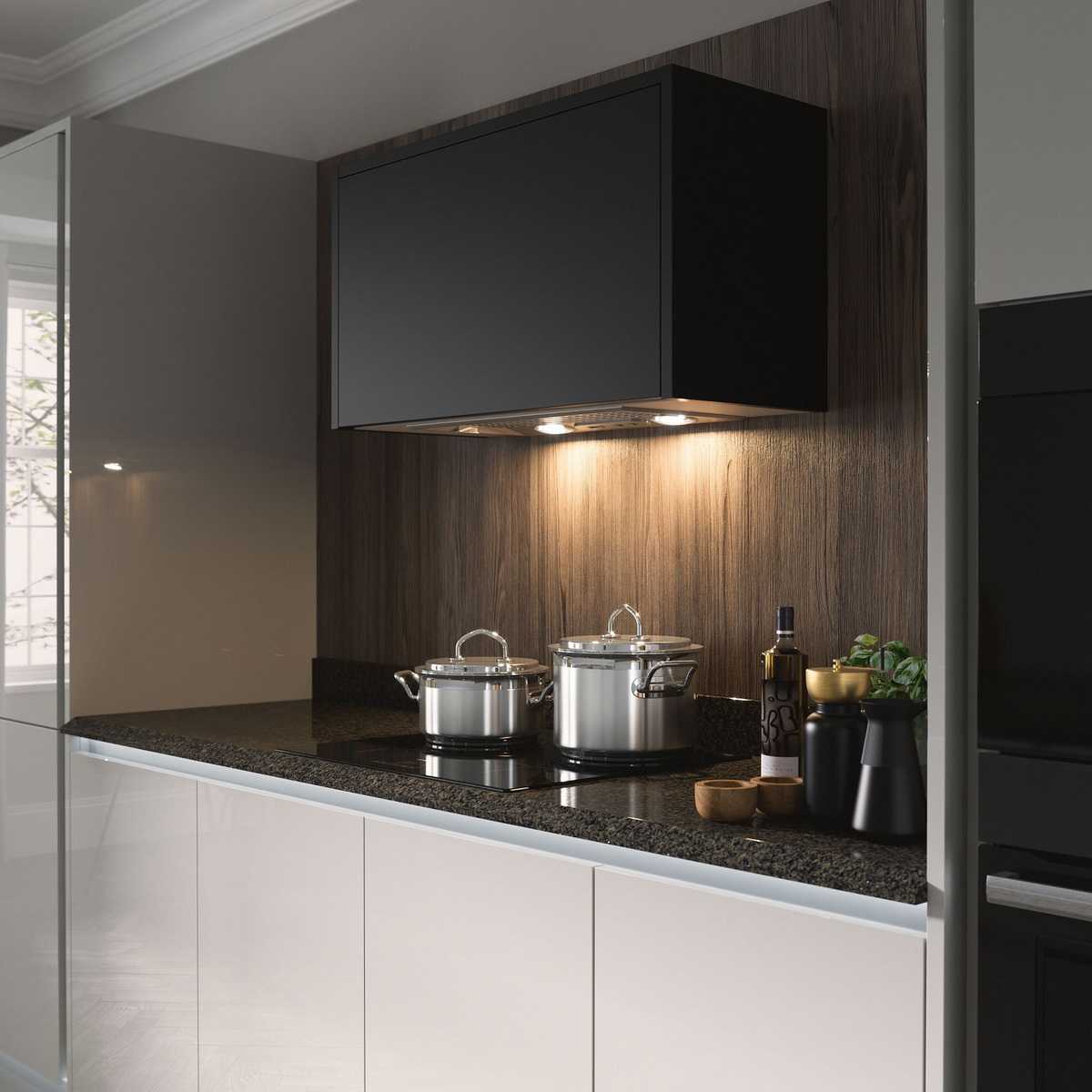 Важно! Удобным считается размещение точечных светильников на козырьке гарнитура. В таком случае не нужно монтировать двойное дно в шкафчиках или использовать более толстую плиту