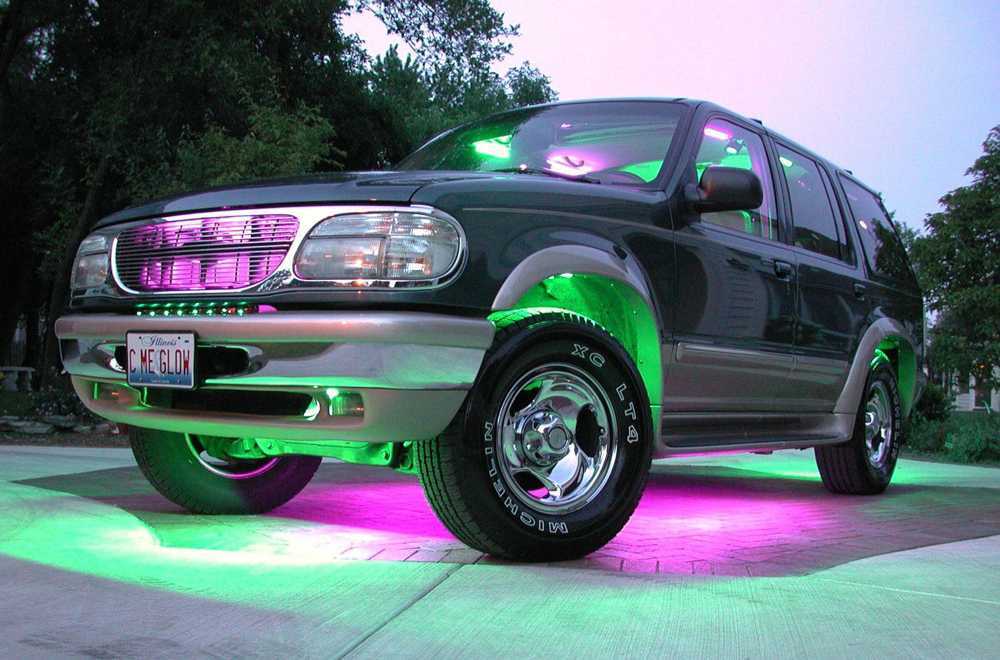 Монтаж осветительных элементов на колёса и днище транспортного средства — это своеобразный способ выделить его из общей серой массы. Действительно, правильный и оригинальный тюнинг днища машины с низким клиренсом создаёт неповторимый эффект летящего над дорогой автомобиля. Модернизация дисков колёс осветительными элементами также придаёт транспортному средству уникальный вид. Усовершенствовать диски можно как с помощью светодиодов в герметичных капсулах, так и LED чипами